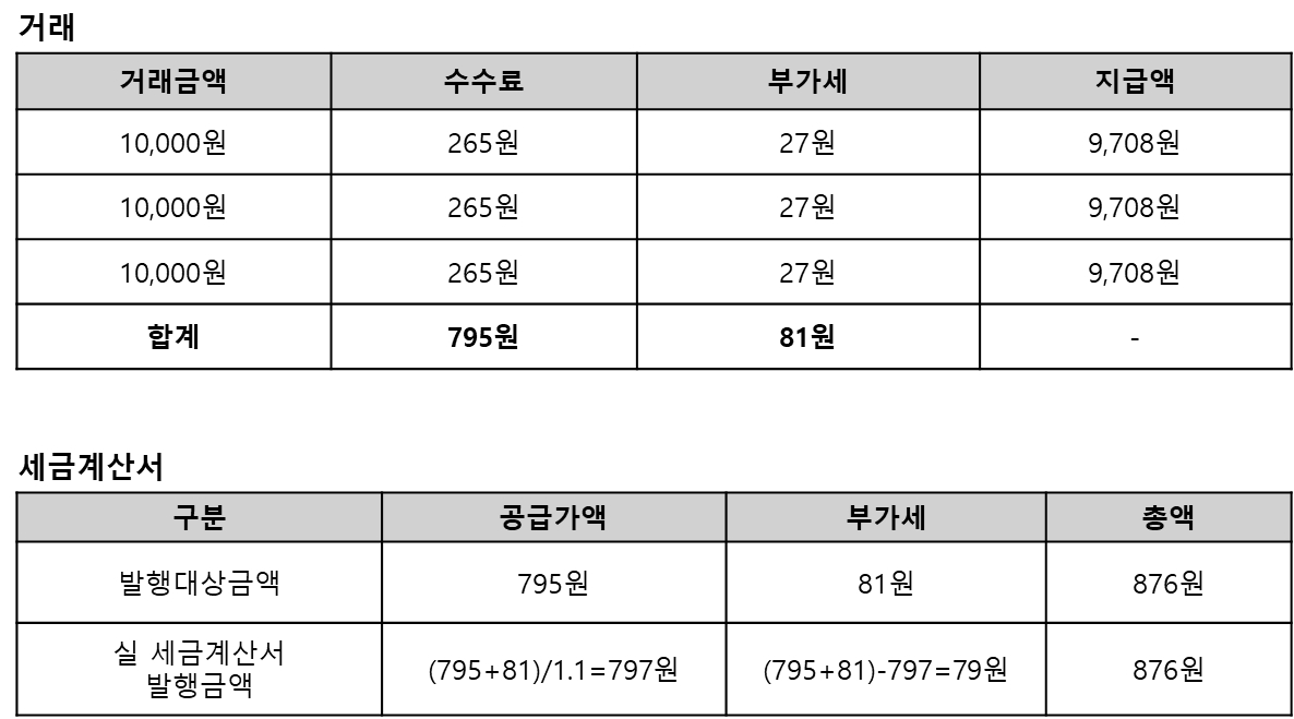 차액정산 대상인 경우 결제수수료에 대해 총 2개 세금계산서가 발행돼요.
