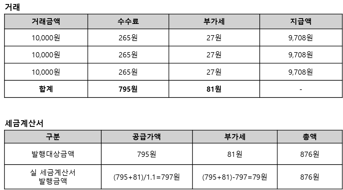 • 차액정산 대상인 경우 결제수수료에 대한 세금계산서가 발행돼요.